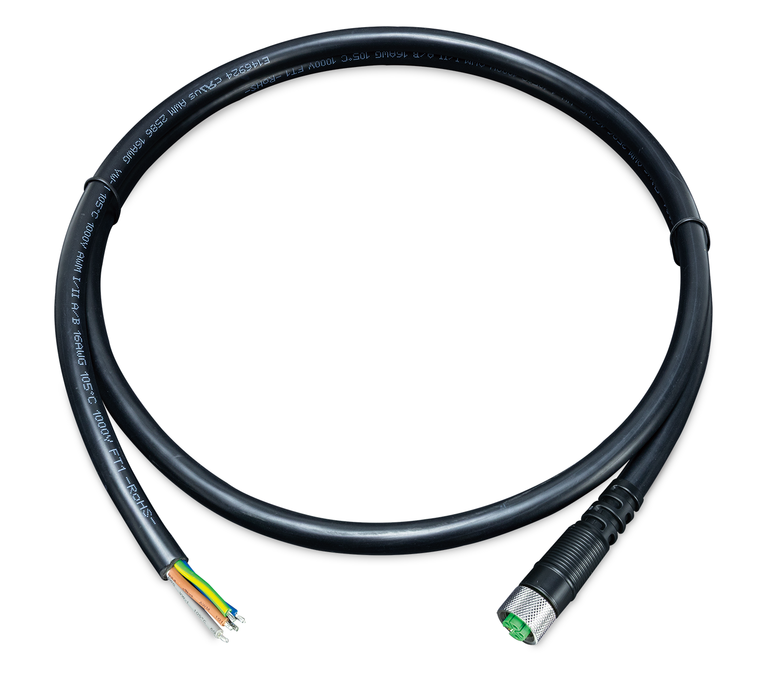 5-Pin K-coded M12 Female to bare end power cable, 1.5 meters