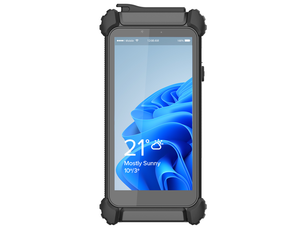 6" Handheld Rugged Tablet, IP65, 2160x1080, 850cd/m2, PCAP Touch, Intel Core N200/N300 CPU, 16GB LPDDR5 RAM, 512GB Storage, 1xGbE LAN, 1xUSB-C, Smart Card, MicroSD, WiFi/BT, F/R Cam Opt., Opt. (GPS/NFC/RFID/Barcode), 3100mAh Bat., 20VDC-in w/ PSU