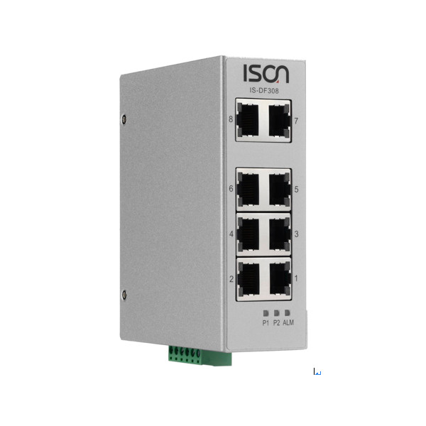 Industrial Din-Rail Unmanaged Fast Ethernet Layer 2 Switch with 8x 100 Base-T RJ45 Ports with 2kV, Relay Output Alarm, 12...58V DC-in Redundant Power Input, -40...+70C Operating Temperature