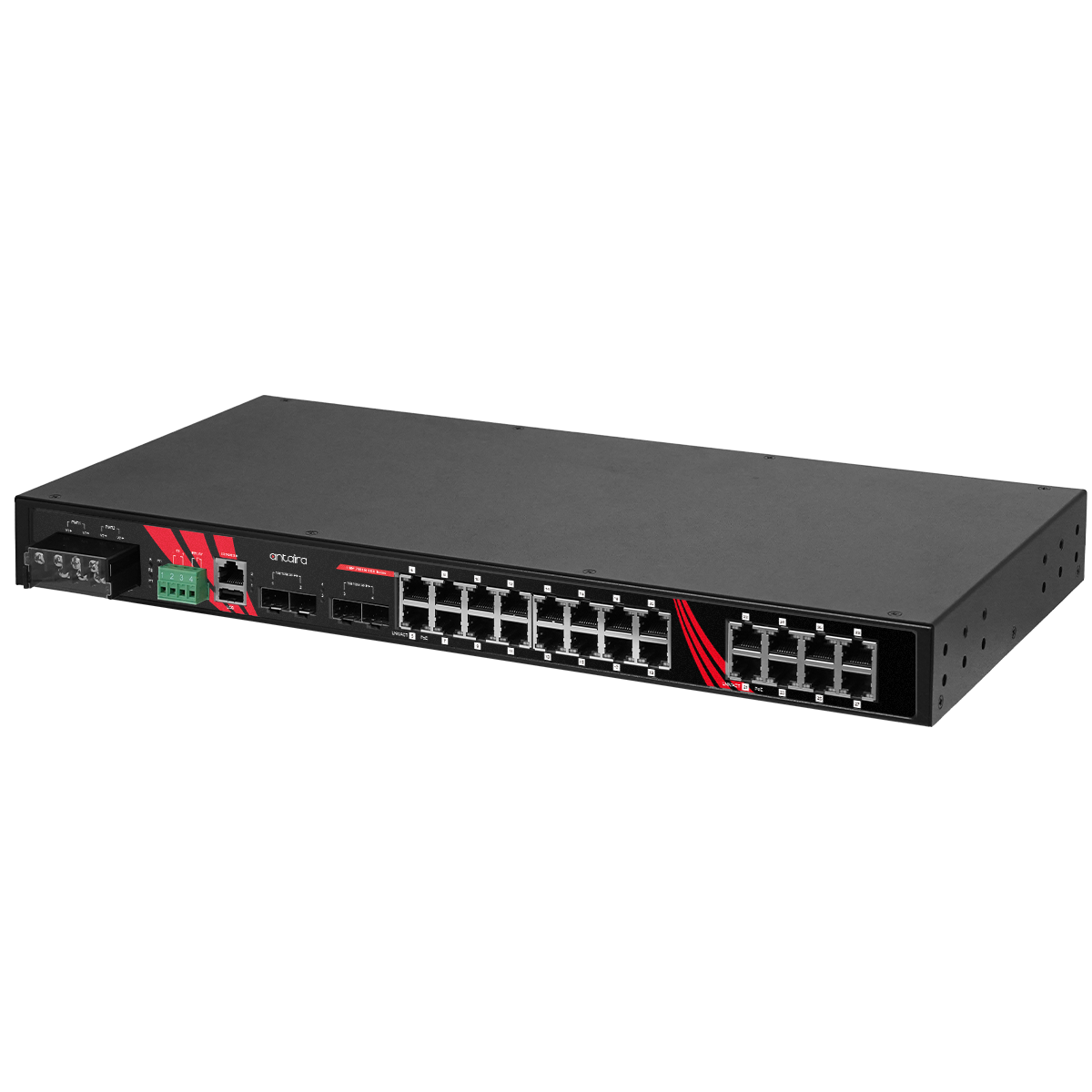 Industrial Managed PoE+ Ethernet Switch, IP30, 28x10/100/1000Base-TX with 24xPoE+, 4x1G/2.5G/10G SFP+, Power Input 12..55 VDC, Operating Temperature -10..65 C