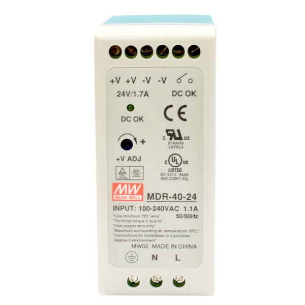 Industrial Din-Rail Power Supply , Input 85...264VAC / 127...370VDC, Output 24VDC 40 W, -20...+70C