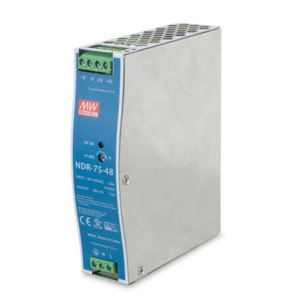 Industrial Power Supply for DIN-Rail Mounting, 75W, 48VDC Out, Input 85-264 VAC, -20...+70C Operating temperature