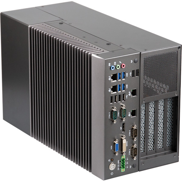 Fanless Embedded System, Intel 10th Gen Core i9/i7/i5/i3 CPU, Intel Q470, Up to 64GB DDR4 RAM, 4xGbE LAN, DVI-D, VGA, DP, 4xUSB 3.2, 6xUSB 2.0, 4xCOM, Audio, 4x2.5" Bay, 2xM.2 Key-M/E, 1xMini-PCIe, 3xPCIe x16/x4, 24-48VDC-in Full Range, -20..50C