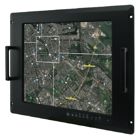 17" Military Grade Rugged Display, 1280x1024, brightness 350 cd/m2, VGA, DVI-D, 5xBNCs, power input 100-240V AC 32W (MIL-38999-1)