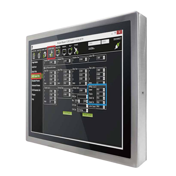 Industrial Stainless 19" LCD Display, Full IP65, 1280x1024, front panel stainless steel, VGA, Projective Capucitive Touch, 100-240V AC, power supply 12V DC