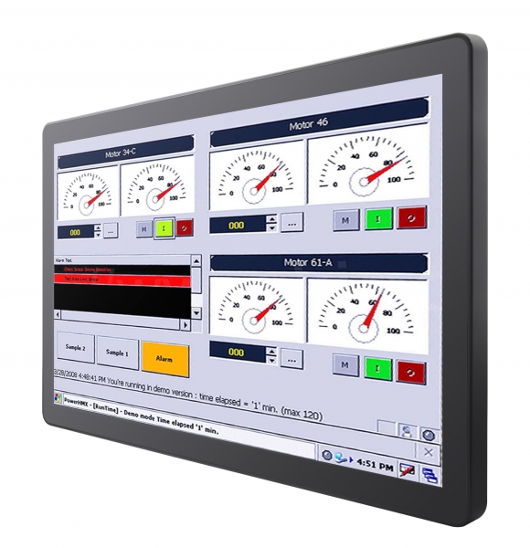 21.5" Industrial G-WIN Panel Display, GS-Series, IP65 Front, 1920x1080 TFT LCD, 250cd/m2, PCAP Touch, 1xVGA, HDMI Opt., DVI Opt., 1xUSB, 12VDC-in w/ PSU