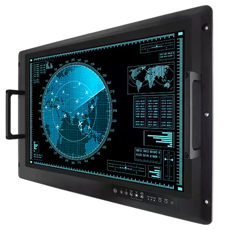 27" Military Display, MIL-STD-810H/461G Certification, 3840 x 2160, 400 cd/m2, AR Glass, Protective Glass, DP, DVI, VGA, 2xHDMI Opt., Optional: (COM, Audio), 100-240VAC-in (9-36VDC-in Optional)