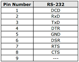 Bei MOXA-Geräten wird eine standardmäßige Pinbelegung der RS-232-Schnittstelle für DB9-Männlich-Anschlüsse verwendet.